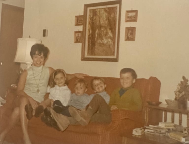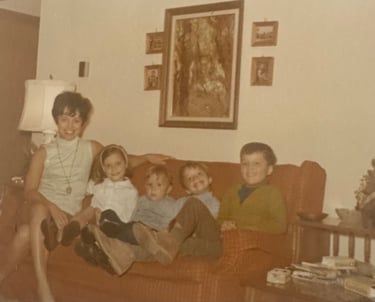 Barb with the four Whitcomb kids - Mike, Sandy, Tim and Chris - in the family living room in 1968 shortly after the bar opened