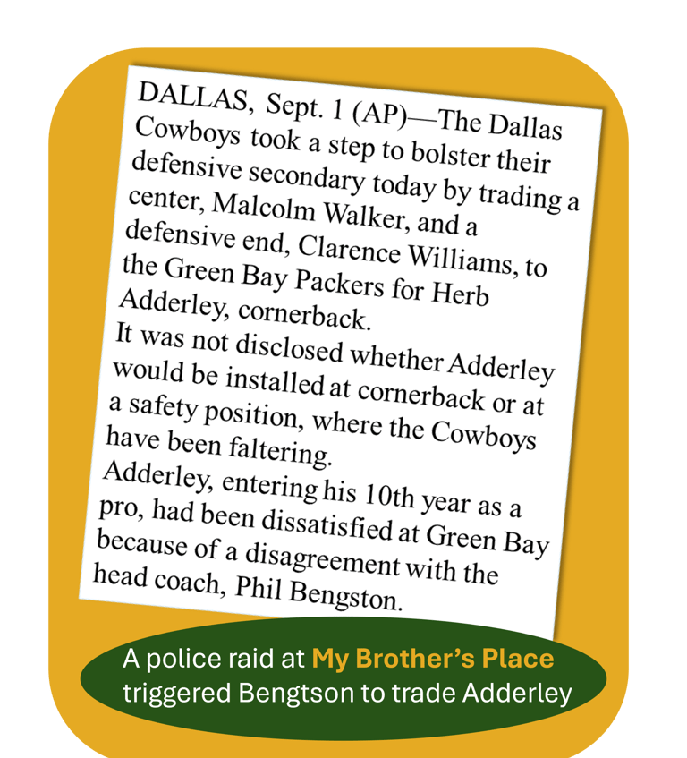 "Green Bay was a great place to play but was not always welcoming off the field. My Brother's Place was truly an oasis for black players in the 1960s and 70s."